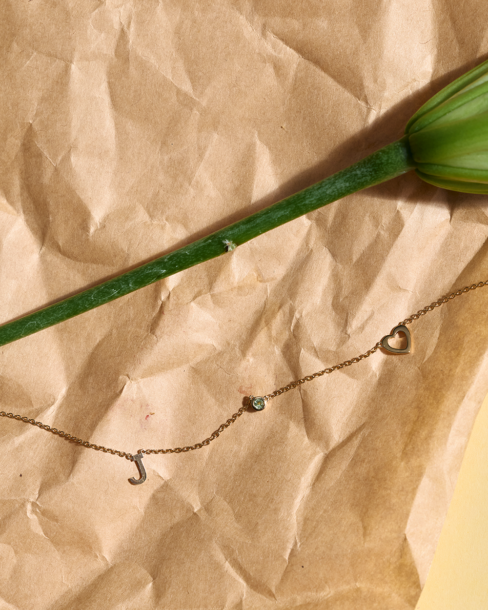 Jess Dover wears her story close. Her Personalised Charm Necklace is a tribute to the people who mean the most—featuring a C initial to honour her mum and grandmother, her son’s birthstone, and a marquise diamond for a touch of sparkle. A meaningful piece, made just for her.