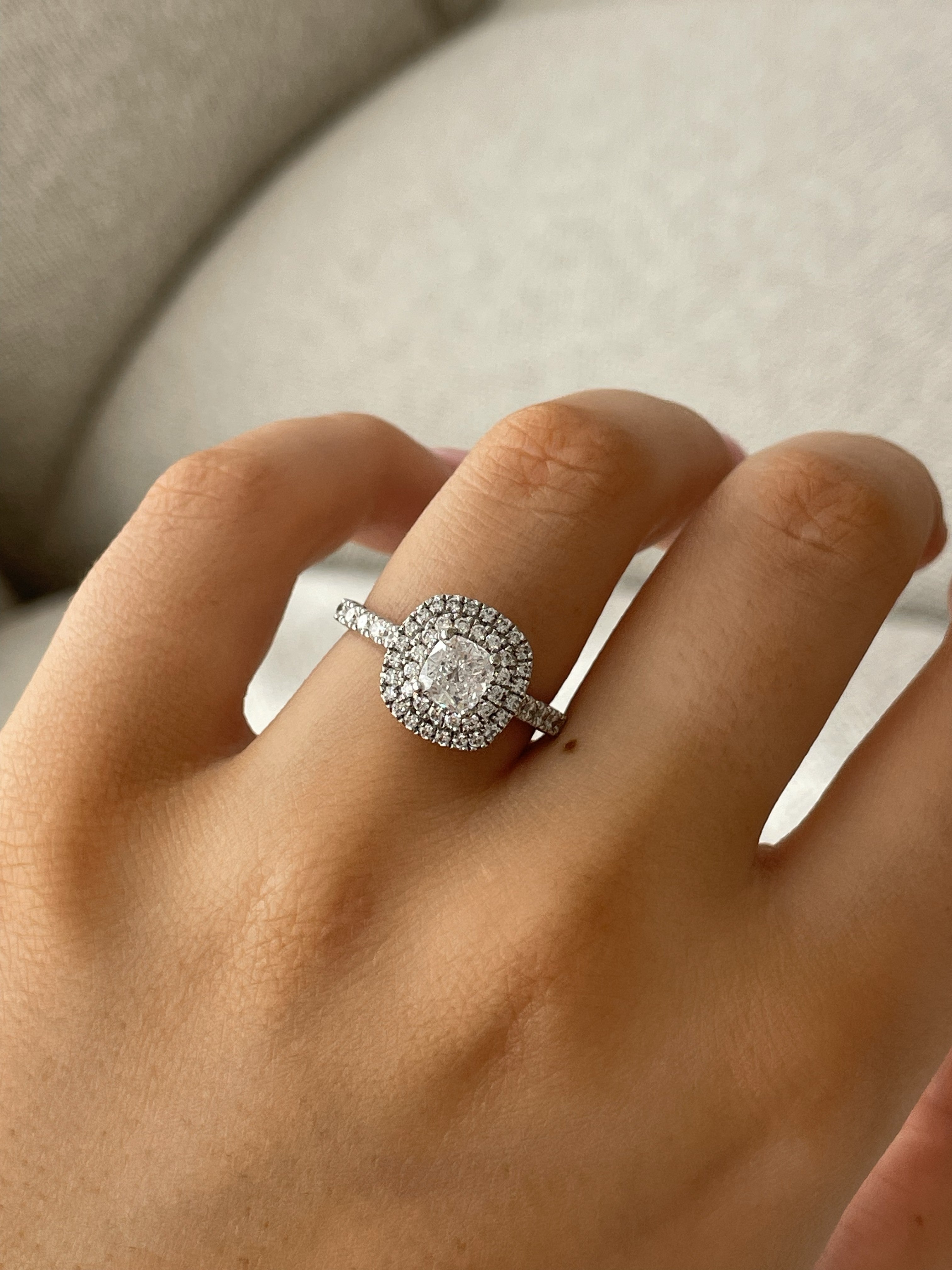Cushion Cut Diamond Ring with Double Halo