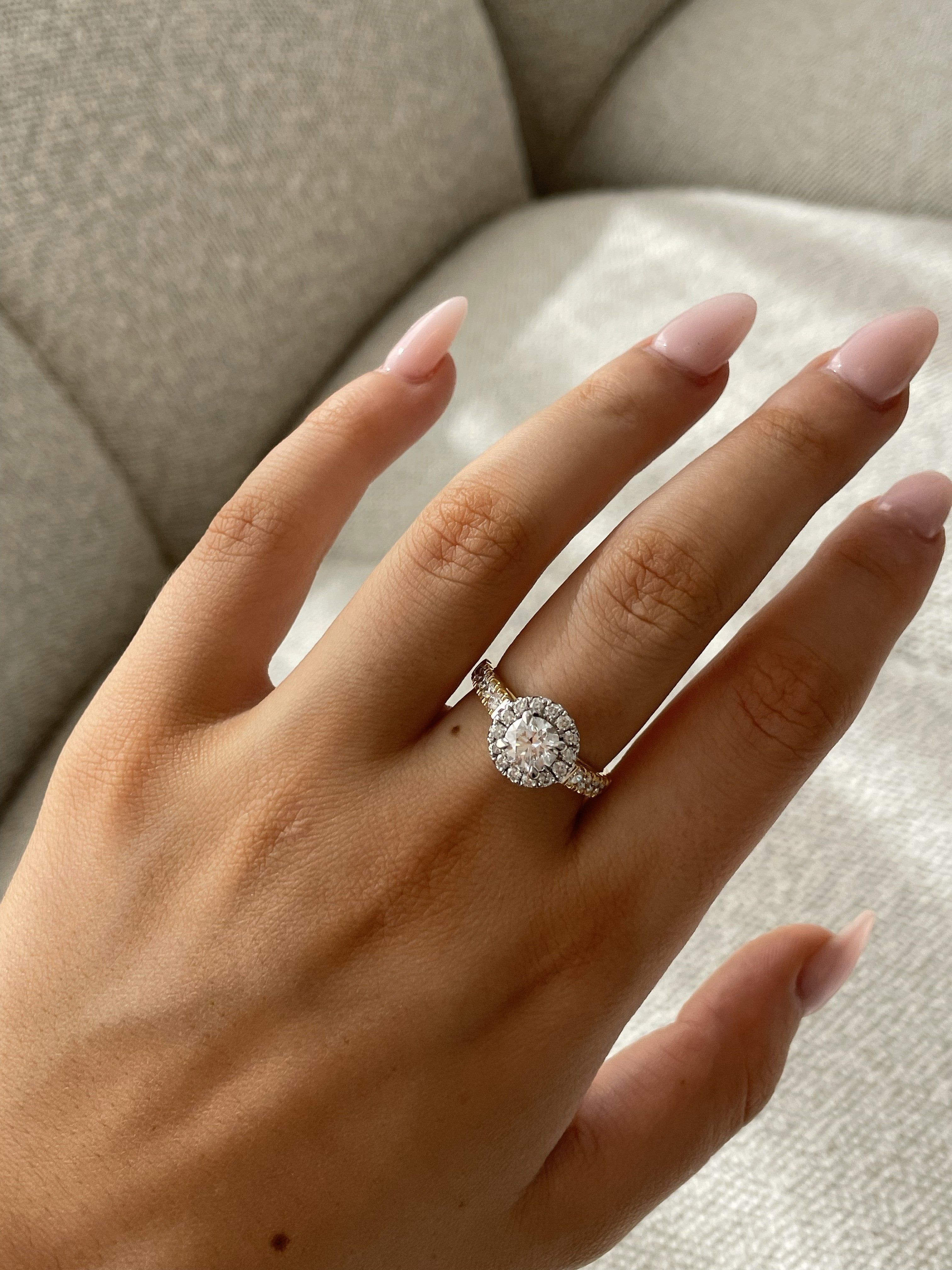 Designed to celebrate brilliance in all its forms, the Solara Ring brings together timeless elegance and modern consciousness. At its centre, a 1.01ct lab-grown brilliant-cut diamond radiates with F colour and VS1 clarity ethically created and visually stunning. Framed by a halo of natural diamonds and finished with a diamond-set band, this 18ct yellow and white gold ring is the perfect blend of sparkle, sentiment and sustainability.