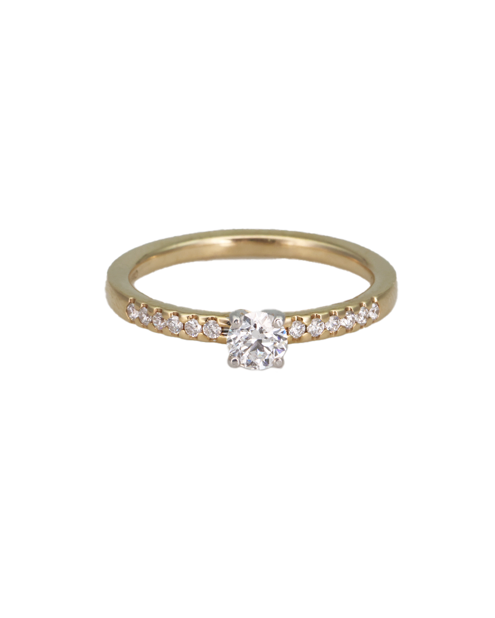 Classic and understated, this two tone diamond ring is a timeless piece designed for effortless everyday wear. Featuring a brilliant cut natural diamond as its centre, the claw setting allows light to enter from every angle, enhancing its natural sparkle. Crafted in a harmonious combination of 9ct yellow and white gold, the contrasting tones beautifully frame the diamonds while offering a refined, versatile look.