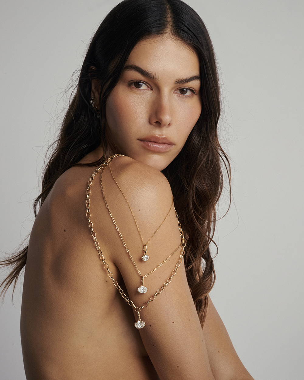 The Victoria Attachment is a celebration of simplicity and brilliance. A single oval lab grown diamond set in 9ct gold, designed to shine on its own or as part of your personalised Isola charm necklace. With pushback fittings, it can be clipped onto any of our chains or worn as a pendant alone, giving you endless styling options. Available in a selection of diamond sizes, the Victoria is a piece that embodies timeless elegance.