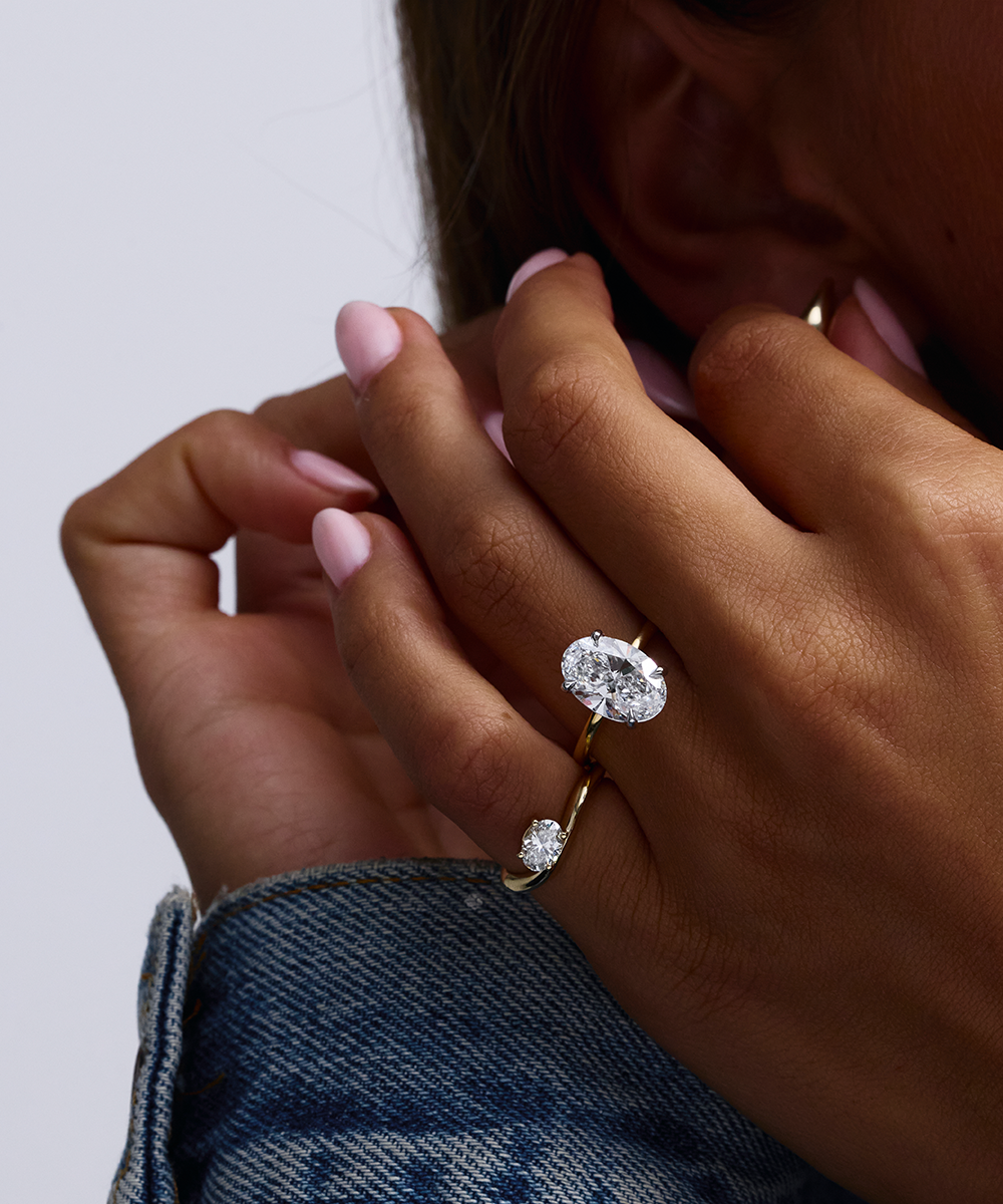 The curved knife-edge band brings an elegant touch, enhancing the sparkle of the diamond. Available in three carat weights to suit your style.