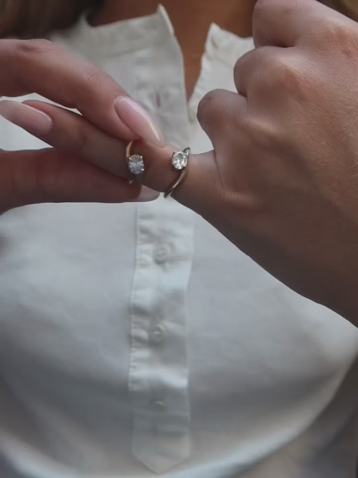 The curved knife-edge band brings an elegant touch, enhancing the sparkle of the diamond. Available in three carat weights to suit your style.