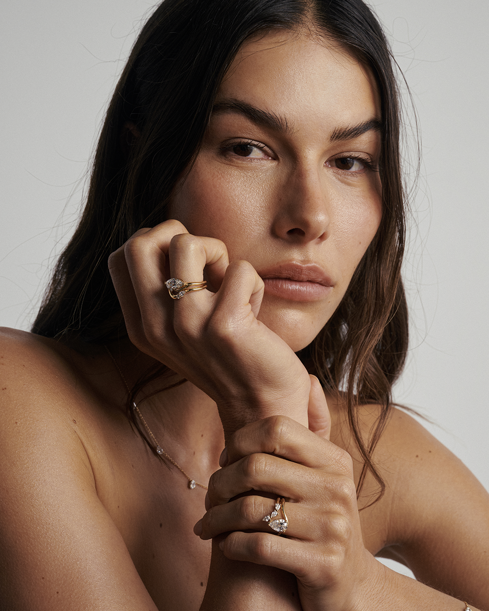 With its curved yellow gold band and celestial name, meaning moonlight, Ayla embodies elegance, light and subtle strength. A perfect piece for those who love refined detail with a unique twist.