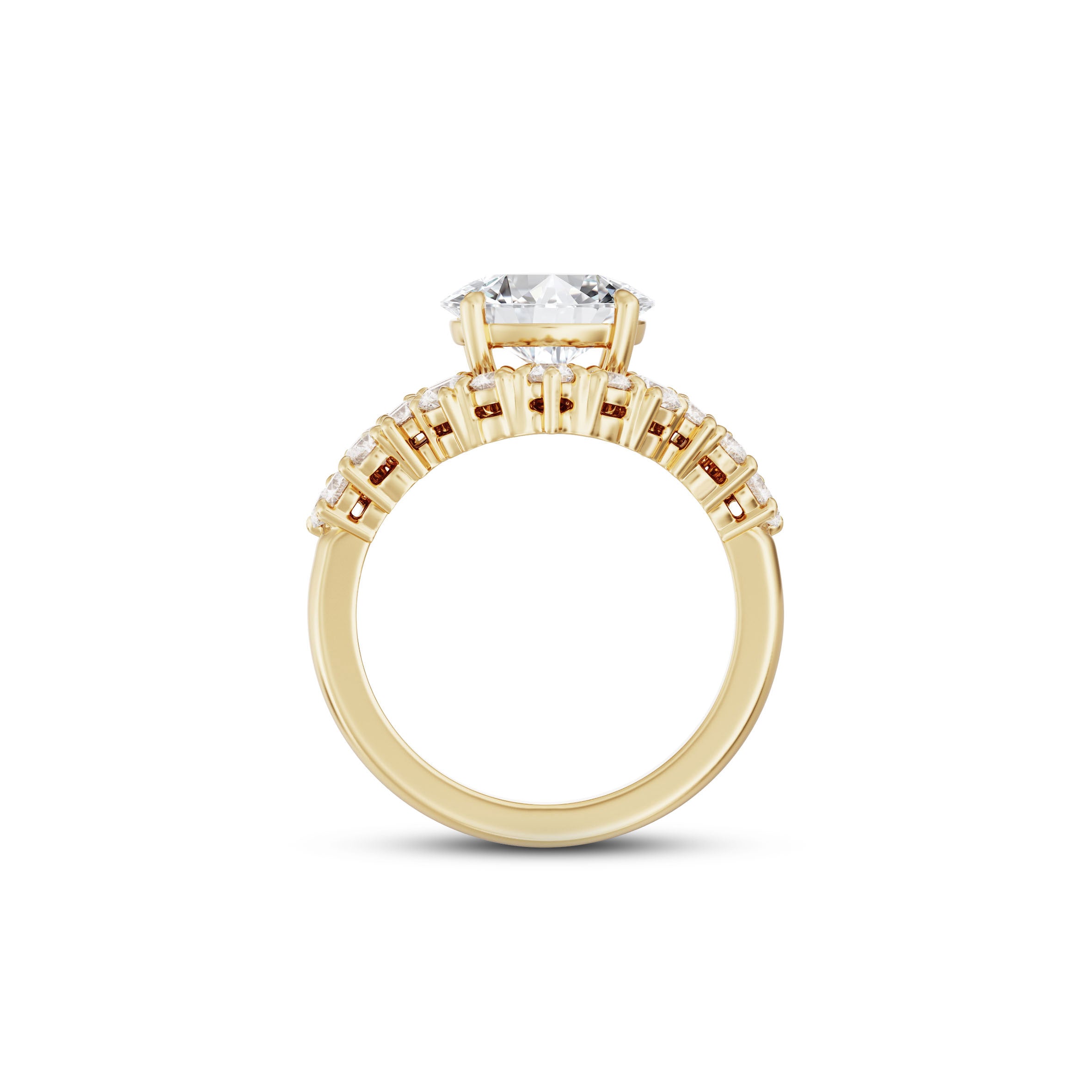 Radiant and full of light, the Estelle Ring is a true showstopper. A brilliant east-west oval cut diamond sits at the heart of this design, framed by a shimmering constellation of round diamonds that sweep gracefully along the curved band. Like starlight reflecting on still water, every angle catches the eye with luminous sparkle.