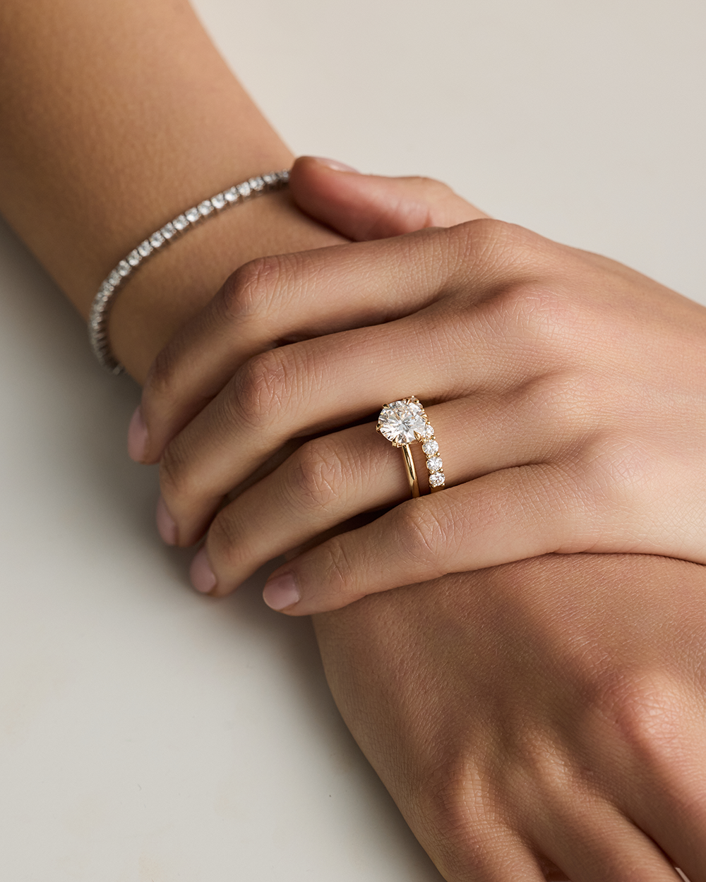 The Jessica Engagement Ring radiates timeless beauty and refined elegance. Featuring a breathtaking 3.01ct round brilliant-cut lab-grown diamond of F colour and VS1 clarity, this stunning centre stone is set in a classic six-claw design. Crafted in luxurious 18ct yellow gold, Jessica’s understated setting enhances the brilliance of the diamond, allowing it to shine with unmatched fire and brilliance. A true testament to expert craftsmanship, Jessica is the perfect representation of enduring love. Ready to wear in Finger Size M.