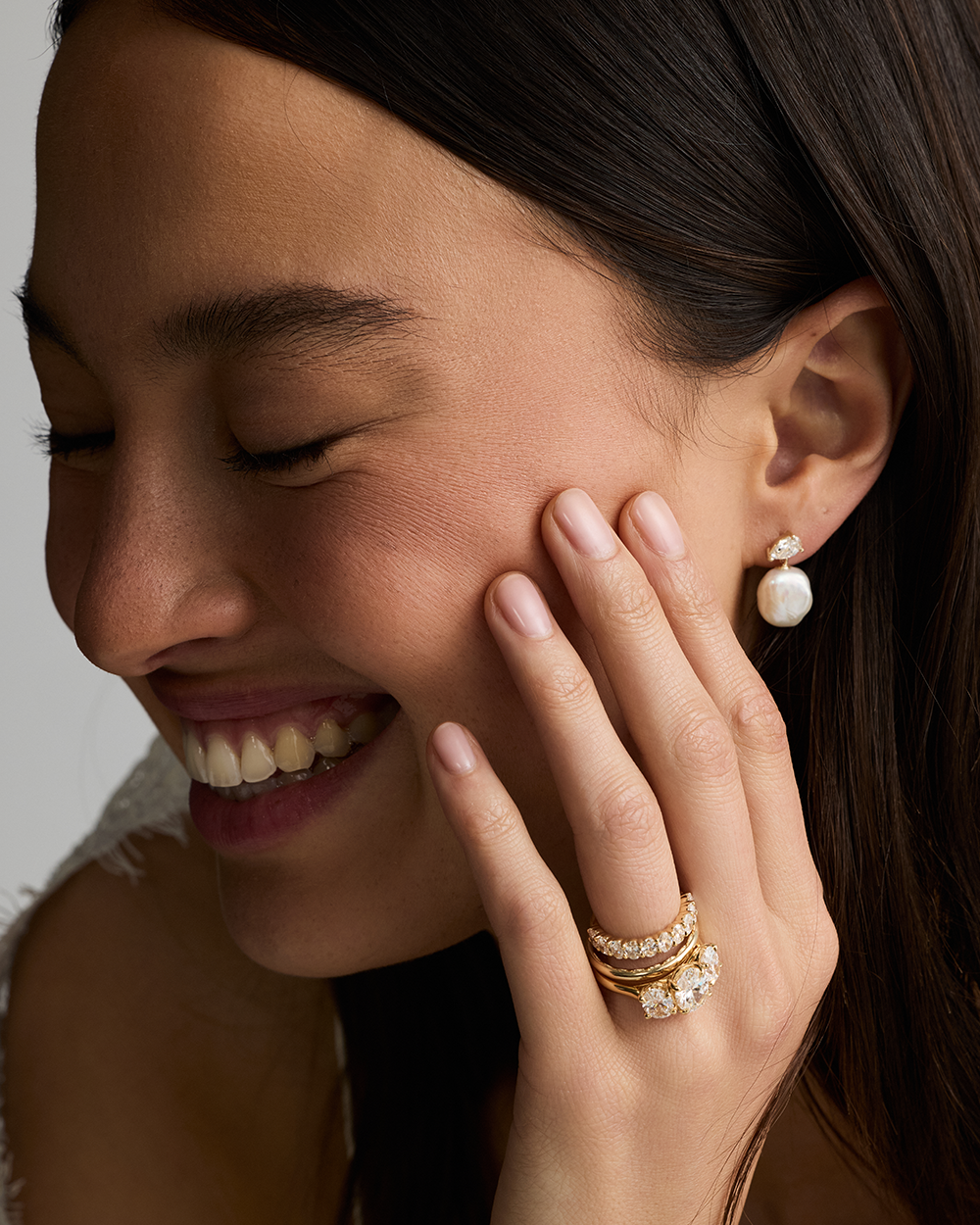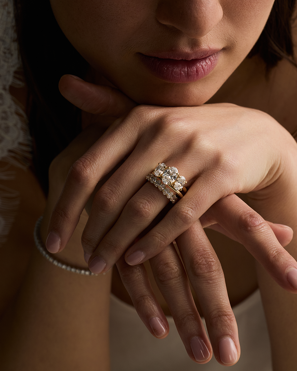 Elegant and endlessly radiant the Odette band is designed to capture the beauty of love in its purest form. Set in 18ct gold, nine perfectly matched oval cut diamonds sit side by side, each one reflecting light with breathtaking brilliance. Its symmetrical flow and bold sparkle make it a striking piece on its own or a stunning complement to your engagement ring.